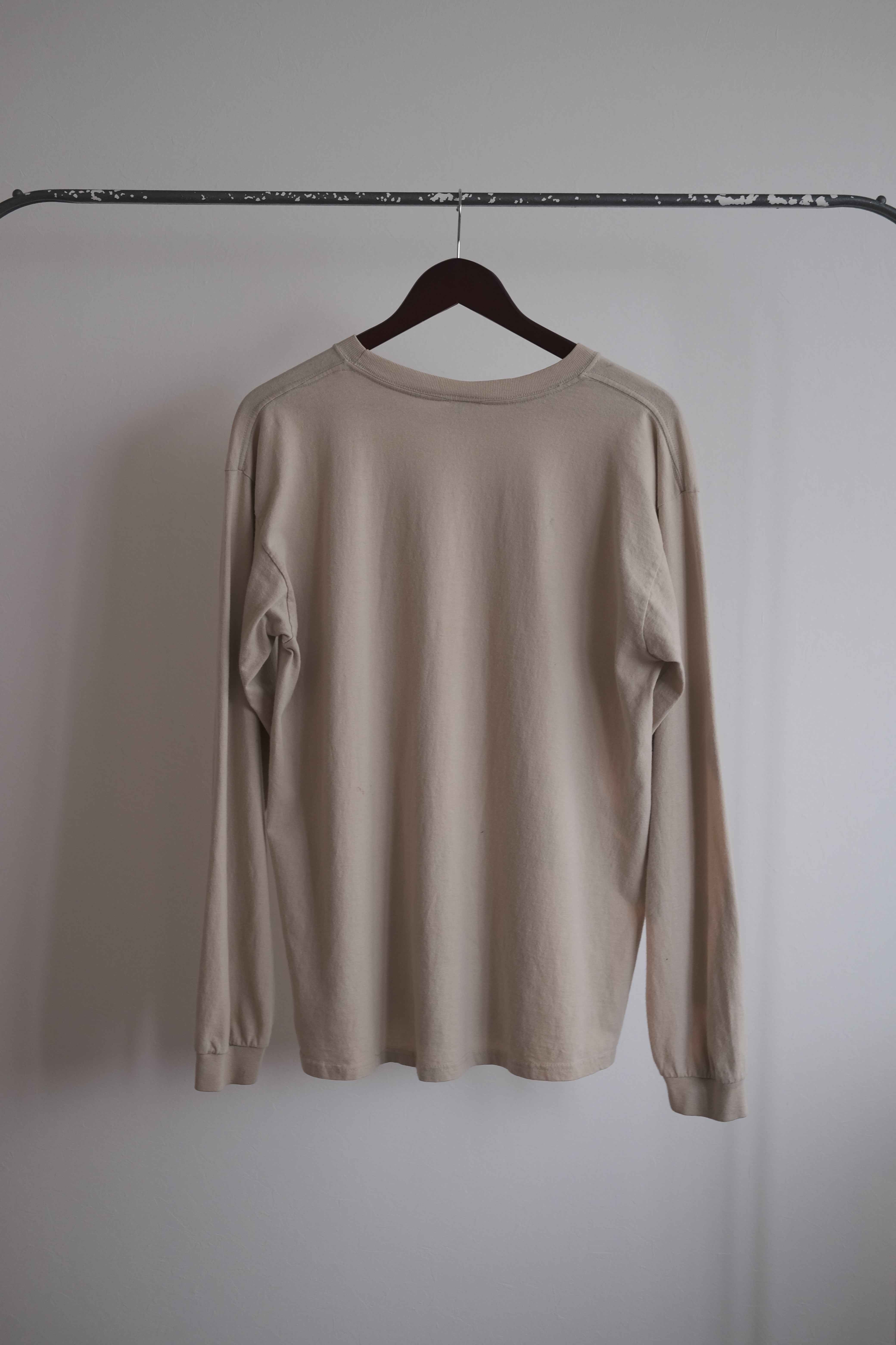 雰囲気のいいイラストとグレージュっぽいボディのカラーで、シルエットも良いのでかなり着やすく合わせやすいロンTです。